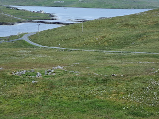 More Hares on the way home. Jill wanted to see the view from above Bridge of Walls so walked up to Scord of Brousta a settlement that was a farm between 3000 and 1500 bc.